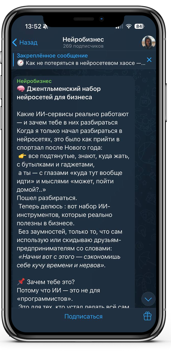 И узнайте, как выжать максимум для бизнеса и делегировать рутину ИИ: без кодов, курсов и «одиннадцати шагов к миллиону». Только по делу, с реальными кейсами.